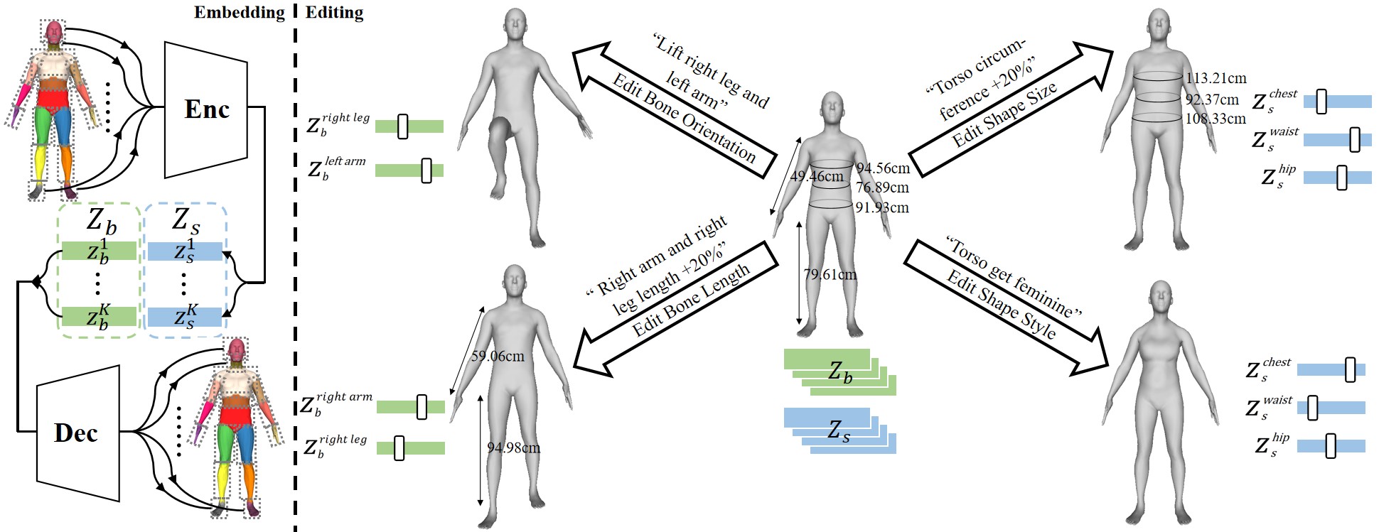 | Learning Semantic-Aware Disentangled Representation for Flexible 3D Human Body Editing |