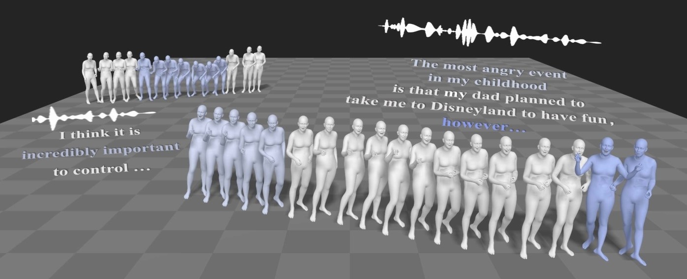 | In this paper, we introduce a novel method, named SpeechAct, based on a hybrid point representation and contrastive motion learning to boost realism and diversity in whole-body motion generation from speech. Our method can be generalized to other languages, and the generated motion can be used to animate reconstructed avatars. |