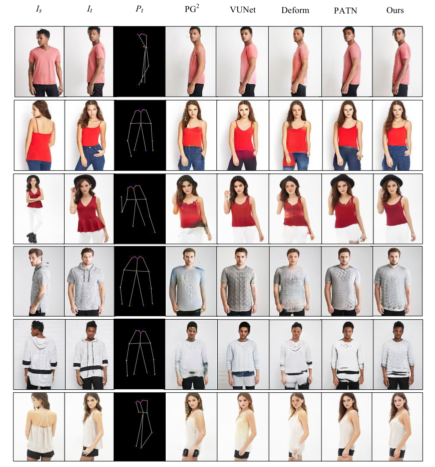 Fig 1. Pose transfer results compared with state-of-the-art methods.