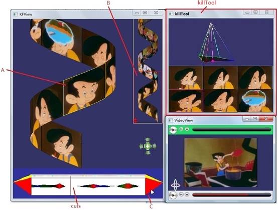 首先利用基于信息熵的Jensen距离测度以及f-divergences作为视频帧间距离的度量来抽取关键帧,然后利用可视分析作为基本工具实现大量关键图像的三维摆放、展示,使得用户对整个视频具有深刻体验。