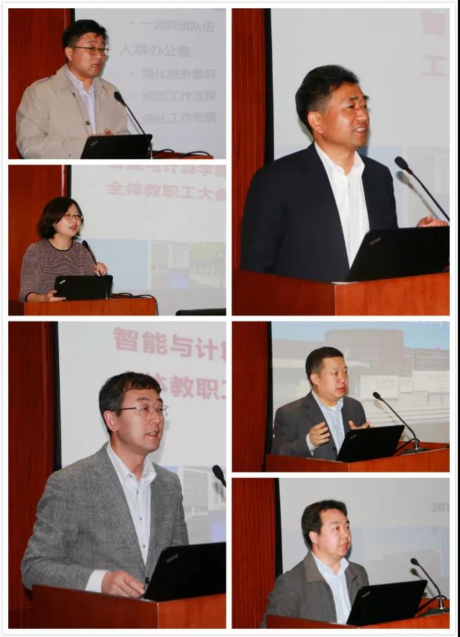 副主任冯伟介绍了学部人事工作的整体思路,并就大家关注的绩效改革方案和人事制度改革进行详细解析。副主任胡清华从面临的历史机遇、现状分析、存在问题等角度总结了学部2018年的科研情况,并对近五年的科研发展及具体举措进行整体规划,号召广大教师紧跟学部发展步伐,产出优秀成果。副主任陶文源介绍了天津市人工智能政产学对接会相关情况。党委副书记史慧介绍了学部2018年度财务收支情况。