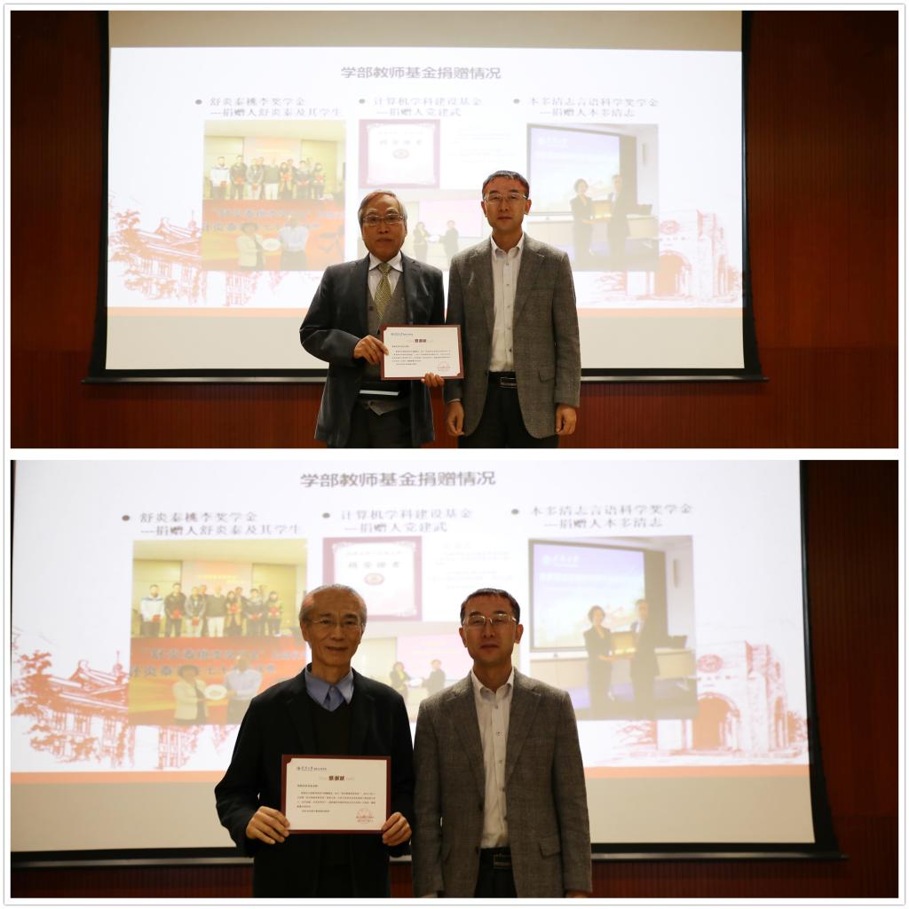 近年来,舒炎泰教授和学生团队、本多清志教授在学部设立了奖学金和学科发展金,会上,学部主任李克秋为捐赠者颁发了感谢状,感谢他们关爱学生关心学部发展的无私义举。