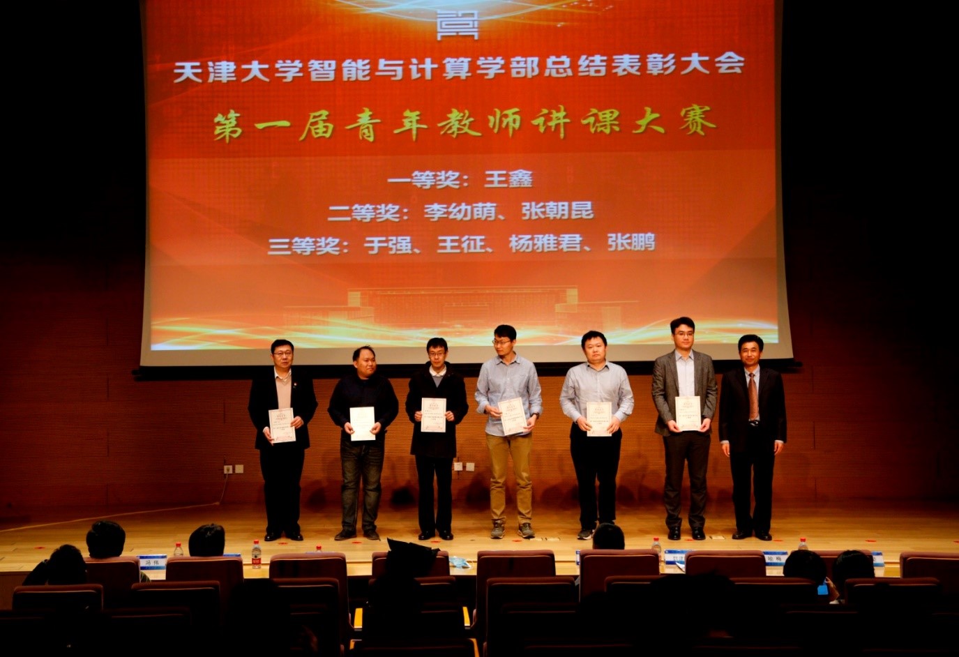 在表彰颁奖环节,首先颁发了智算学部第一届青年教师讲课大赛奖项,学部7位老师分获一二三等奖。该奖项设立于2019年,每两年举办一次讲课大赛,为青年教师互相交流切磋讲课技能、提高讲课水平和质量搭建平台。