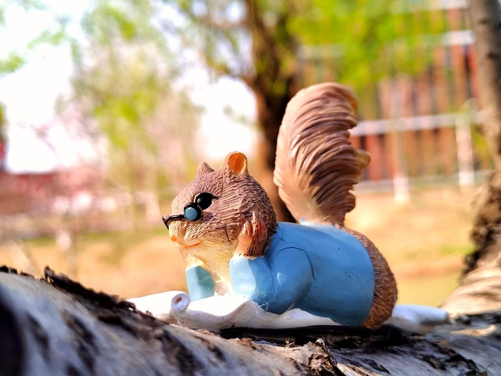 诚园七斋的某处树桩上,三只小动物也加入了学习的队伍,勤勤恳恳、孜孜不倦;