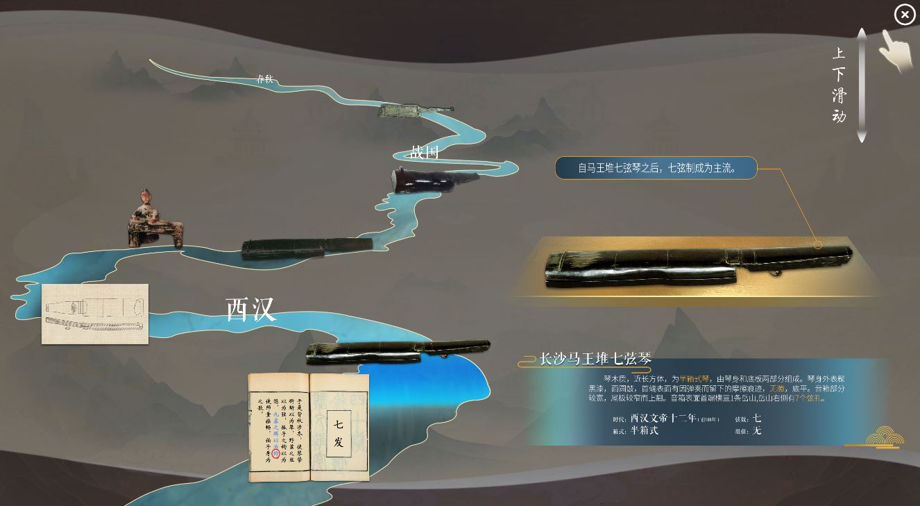 展览中推出了由新番 和湖南博物院联合开发的“高山流水遇知音”—湖南音乐知识图谱可视化、湖南青铜乐器文物、湖南近代琴人琴事、古琴虚拟弹奏、湖南少数民族音乐等多个数字展项,以及听见湖湘文物知识图谱微信导览小程序。展览通过将项目技术成果与湖南省博物院丰富的音乐藏品相结合,构建了音乐文物知识图谱和技术平台,汇聚形成湘湖音乐相关的文物、乐声、人物、文学、历史、图像等多源异构文物大数据,将珍贵音乐文物实物和多种沉浸式互动数字展示技术相结合,打造了一个音乐文明的活性文本和视听盛宴。