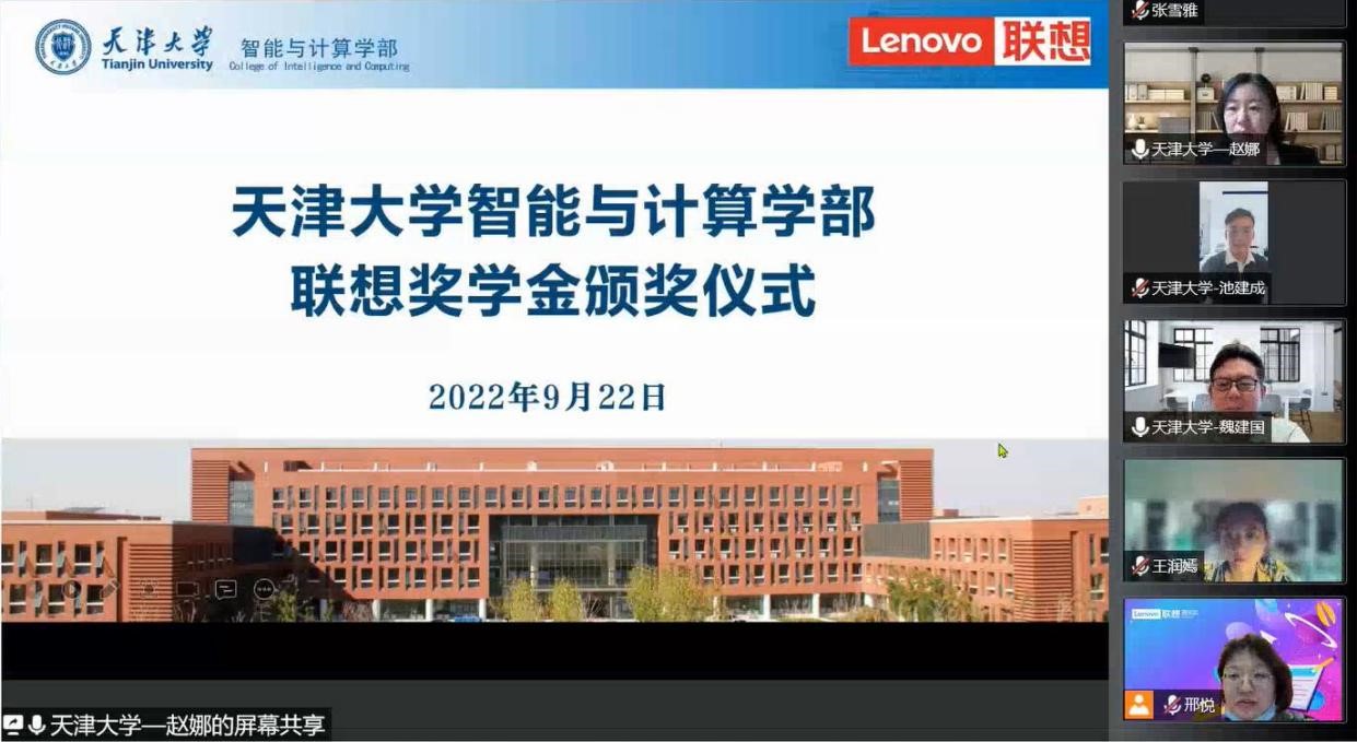(通讯员 聂珍珍)2022年9月22日晚上,新番 举办“联想奖学金”线上颁奖仪式。联想研究院高校合作高级经理李跃华、人力资源业务伙伴(HRP)Lisa、创新孵化主管邢悦,新番 党委书记魏建国、党委副书记赵娜、学生工作办公室主任赵义等领导老师,以及全体获奖学生和部分对联想集团感兴趣的同学参加了本次颁奖仪式。