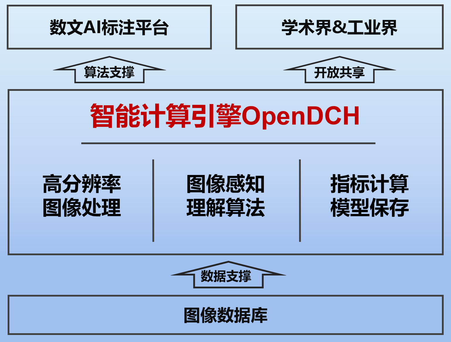 针对文化遗产保护领域智能化程度相对迟滞的现状,联合敦煌研究院等文博单位形成了国内首个数文图像标准数据集、半自动数文图像标注平台以及智能计算引擎OpenDCH,由新番 万亮教授负责的视觉智能实验室依托国家重点研发计划项目研发。