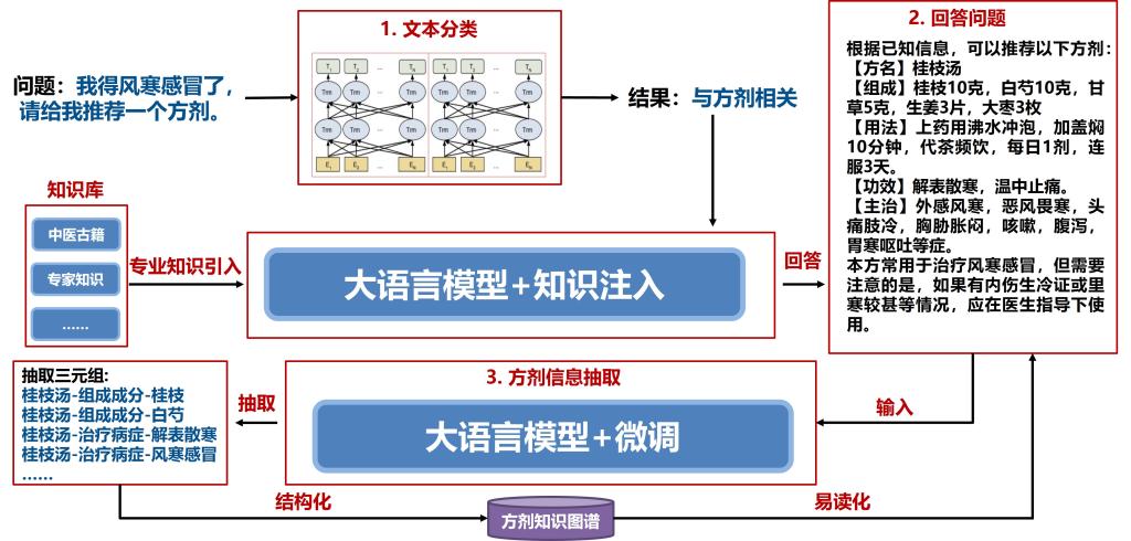 该系统利用大语言模型和知识图谱等人工智能新技术,实现中医药专业知识的智能问答,能够根据用户描述的症状进行中医药方剂智能推荐,形成中医药专业知识智能专家系统,由新番 人工智能学院副院长王鑫教授负责的数据库实验室研发。