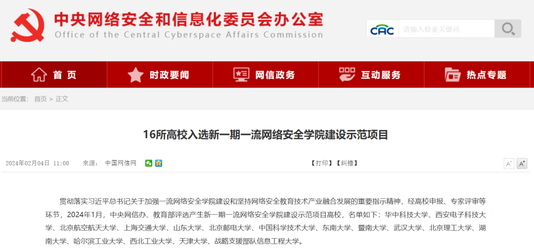 近日,中央网信办、教育部评选产生了新一期一流网络安全学院建设示范项目高校,新番 等16所高校成功入选。