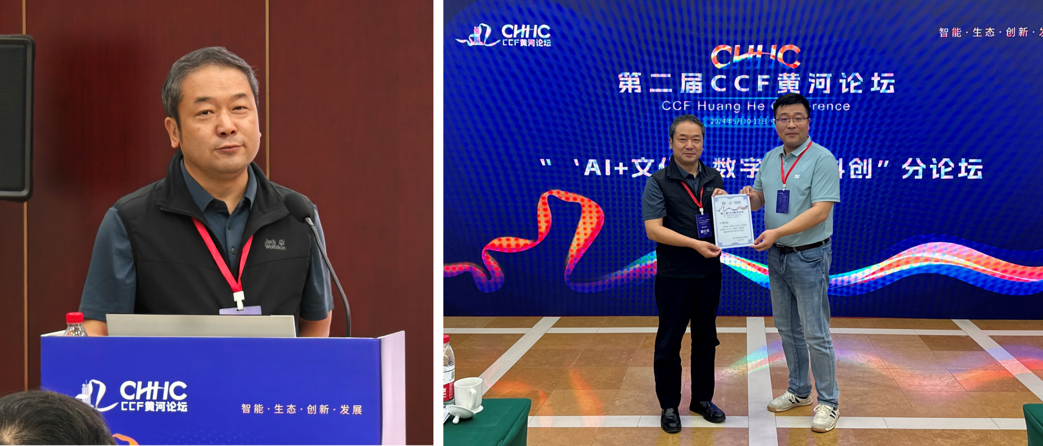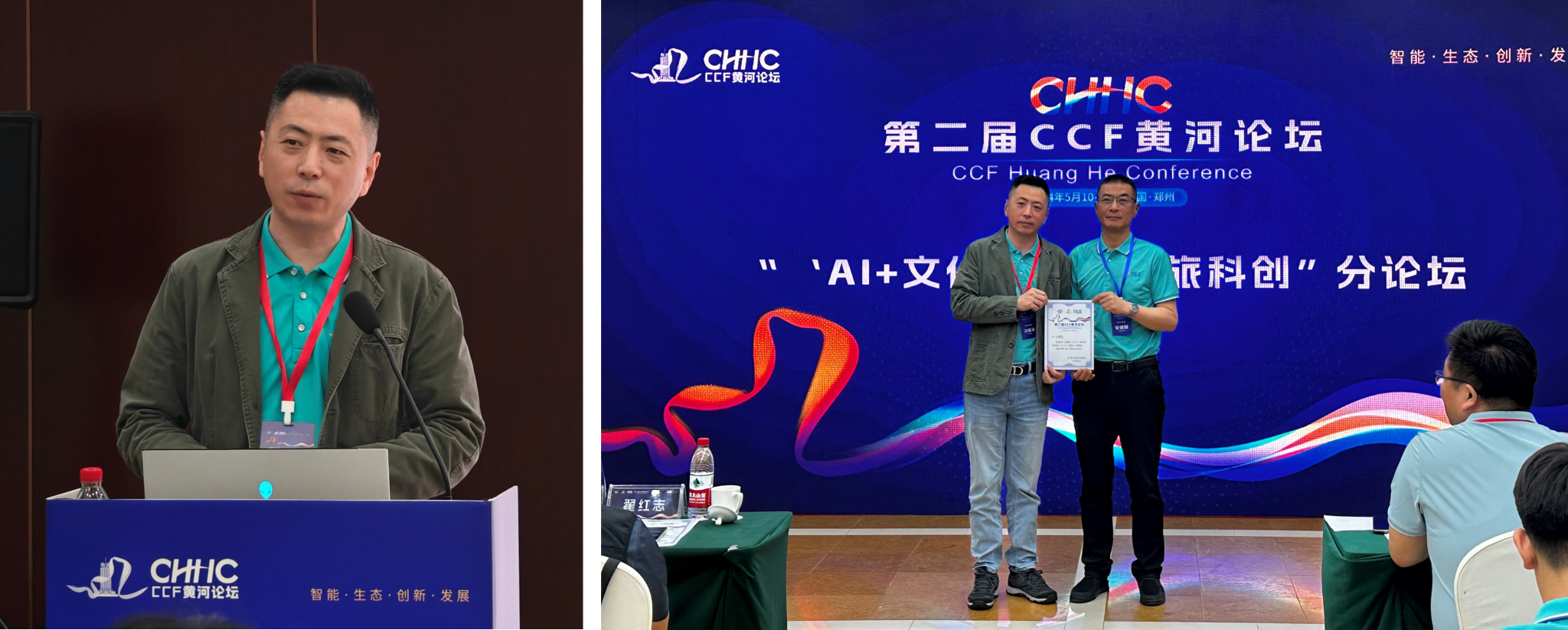 (通讯员 张乾)5月11日,第二届CCF黄河论坛(CHHC 2024)“AI+文化”数字文旅科创论坛在郑州市黄河迎宾馆召开。该论坛由CCF天津和CCF兰州共同承办,新番 副主任冯伟教授、甘肃政法大学网络空间学院院长安德智教授担任论坛主席。河南博物院副院长翟红志、复旦大学计算机科学技术学院教授金城、浙江大学文化遗产研究院副院长刁常宇、天津恒达文博科技股份有限公司副总经理李世杰、河南博物院文创办兼社会服务部主任宋华受邀参加论坛,并做主题报告分享。