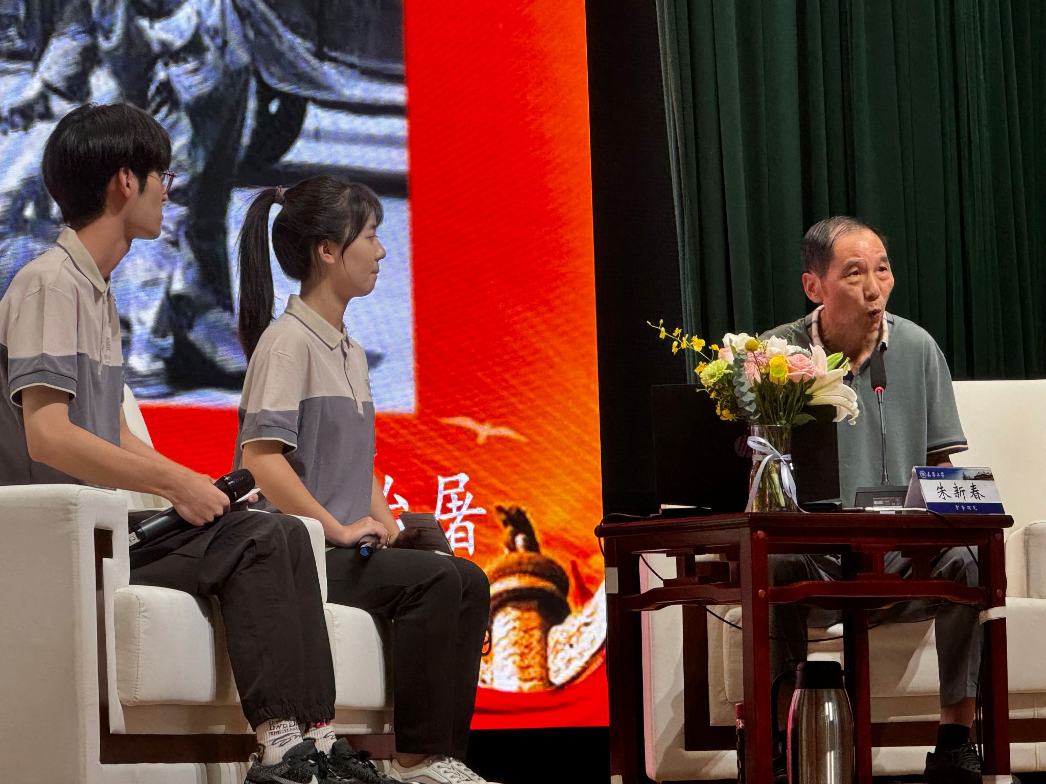在热烈的掌声中,朱新春以“入党”“找党”“跟党”“永远听党话”“初心代代传”为线索,饱含深情地讲述了父亲朱良才将军从普通教师到朴素的革命者,又从自觉的革命者最终成长为成熟的革命者的故事。