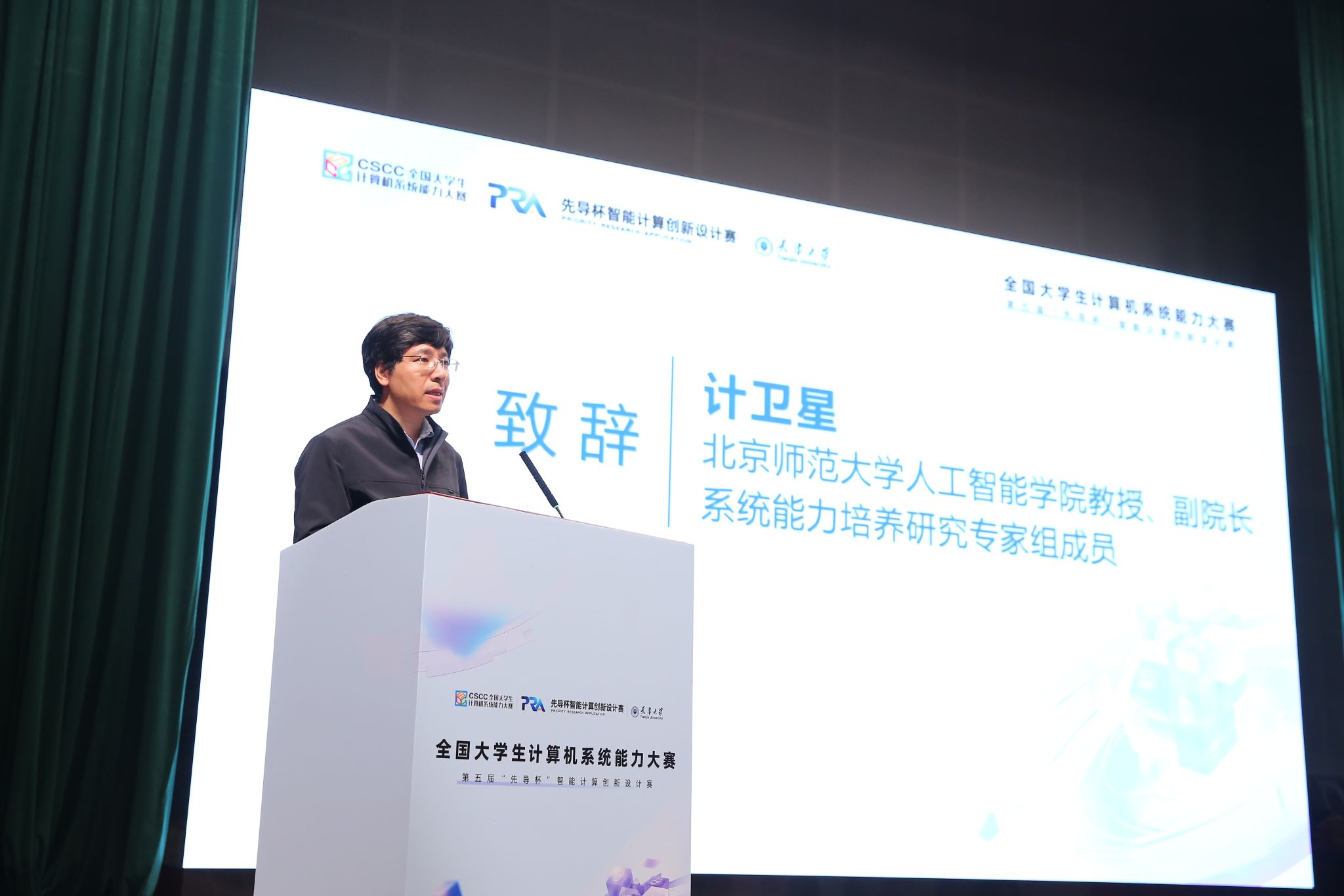 计卫星在致辞中,表示“先导杯”智能计算创新设计赛为全国大学生计算机系统能力大赛开创了新的赛道,其成功举办对培养计算机专业人才起到了重要作用,希望产学研各界专家能与系统能力培养研究专家组继续共同推动我国高质量的人才培养。