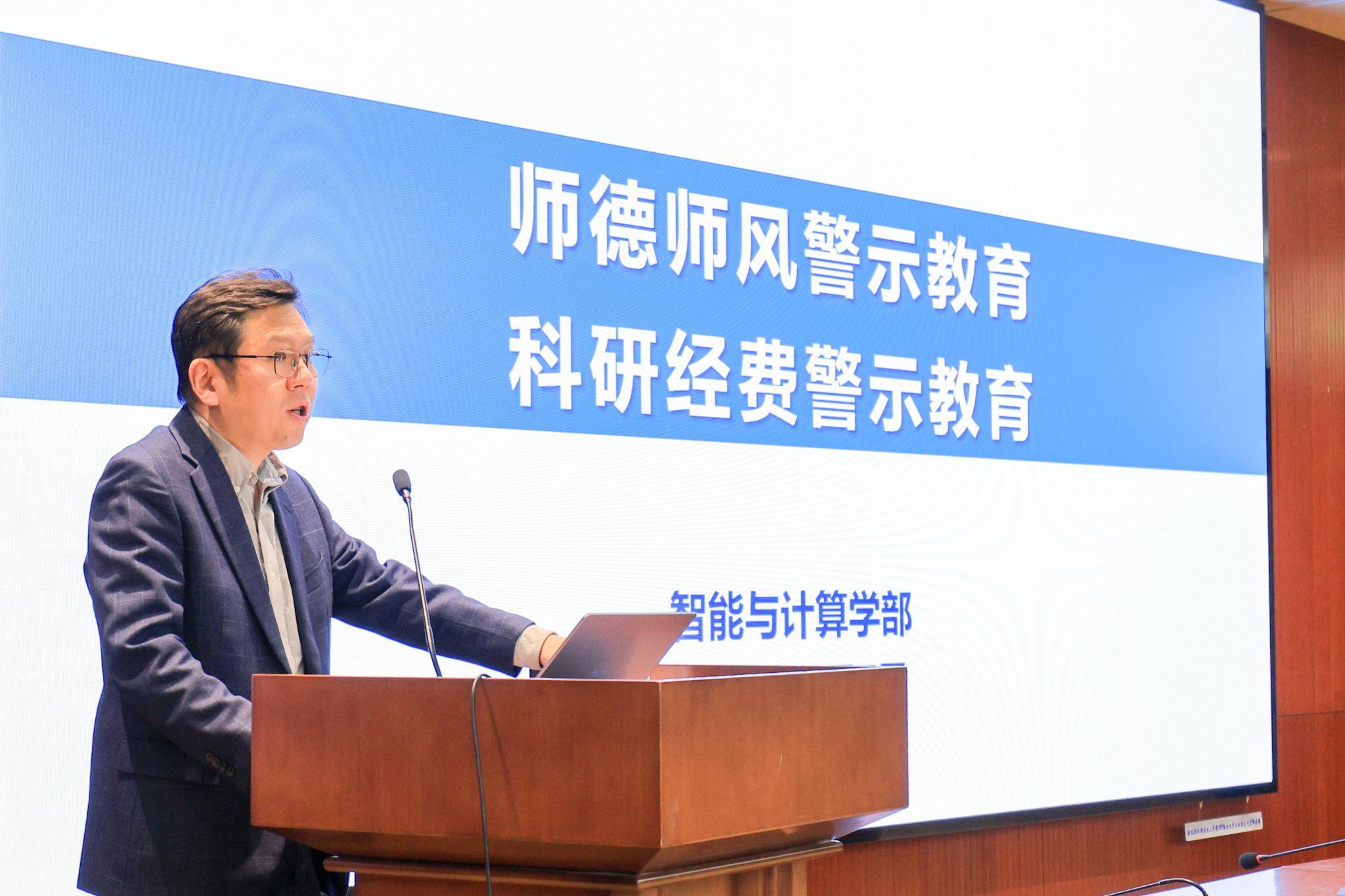 最后,学部党委书记魏建国做师德师风和科研经费管理警示教育。他强调,师德师风是教师队伍建设的灵魂,全体教职工要坚守教育初心,牢记育人使命,树立底线意识,做到以德立身、以德立学、以德施教,争做大先生。会上,还对科研经费管理和使用进行了专题宣讲和警示案例学习。