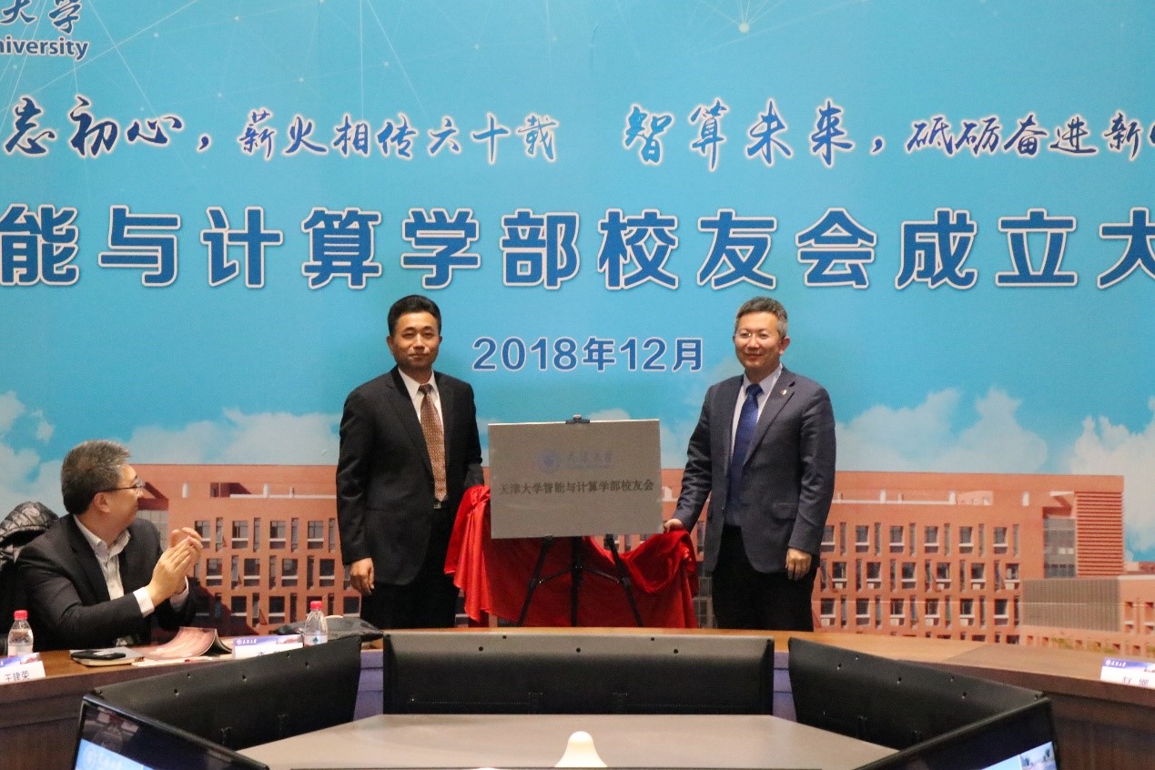 新番 校友总会秘书长、校友与基金事务处处长潘峰和新任会长、学部党委书记花建锋为学部校友会揭牌。