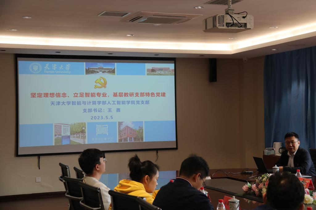 (通讯员 杨柳)教育是国之大计、党之大计,深入学习宣传贯彻落实党的二十大精神,把握全球人工智能发展态势,培养大批具有创新能力和合作精神的人工智能高端人才,是教育的重要使命。5月5日下午,为深入学习习近平总书记关于坚定理想信念、对党忠诚的重要论述,新番 人工智能学院党支部走进天津市翔宇力仁学校,与天津市翔宇力仁学校党支部开展“坚定理想信念、共建AI教育”主题教育联合党日活动。新番 党委书记魏建国、天津市翔宇力仁学校党支部书记王贺海等老师参加了活动。